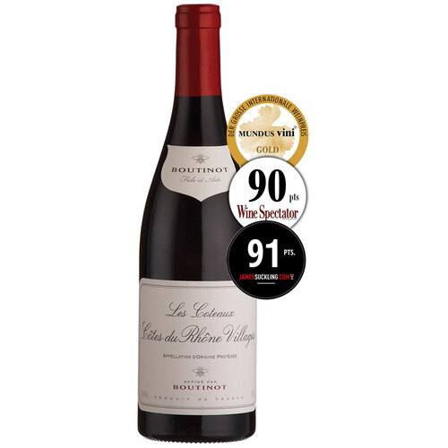 Boutinot’s philosophy, is to start with the intention of making the very best Côtes du Rhône Villages possible by sourcing wine from the best vineyards of named villages.  Boutinot's Côtes du Rhône Villages 'Les Coteaux' is therefore a selection of the best Grenache Noir and Syrah from some of the 17 named Côtes du Rhône Villages. Wine is sourced from a number of growers with exceptional terroir and so have the flexibility to select only the very best fruit each vintage. Mostly unoaked, a small proportion (15%) is part-aged for up to 20 months in mostly older, oak barrels to bring depth and subtle notes of complexity.