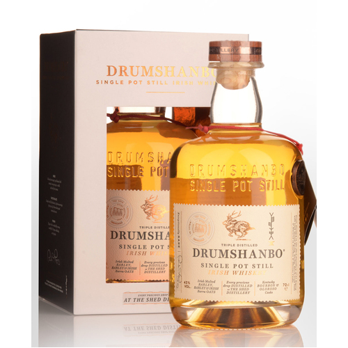Every precious drop of Drumshanbo Single Pot Still Irish Whiskey has been triple distilled at the Shed Distillery using Malted Irish Barley, Un-malted Irish Barley and Irish Barra Oats. Aged in Sherry Oloroso and Kentucky Bourbon casks with no added colour and no chill filtration, this 43% Single Pot Still has been distilled by Head Distiller, Brian Taft.