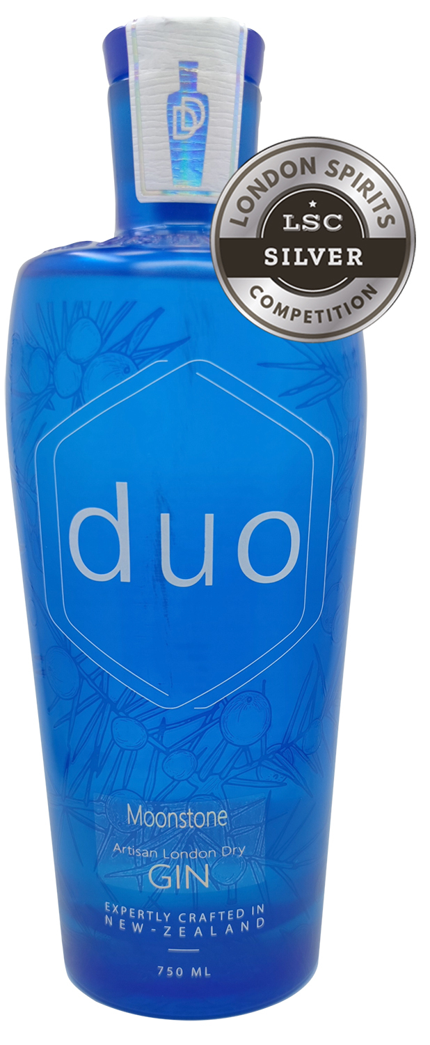 Duo Moonstone Gin is a well balanced London Dry Gin, your palate is greeted with the taste of fresh Juniper berries and a hint of New Zealand citrus, well balanced with the sweetness of Cassia before finishing with a slight spicy note from the pink peppercorn.