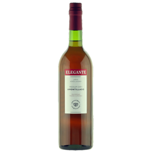 Elegante Medium Amontillado Sherry has an attractive gold and amber colour and a fragrant nuttiness on the nose and palate. This delicious medium dry Sherry created in the world-famous González Byass family Bodegas is a perfect partner for light pâtes and quiches.