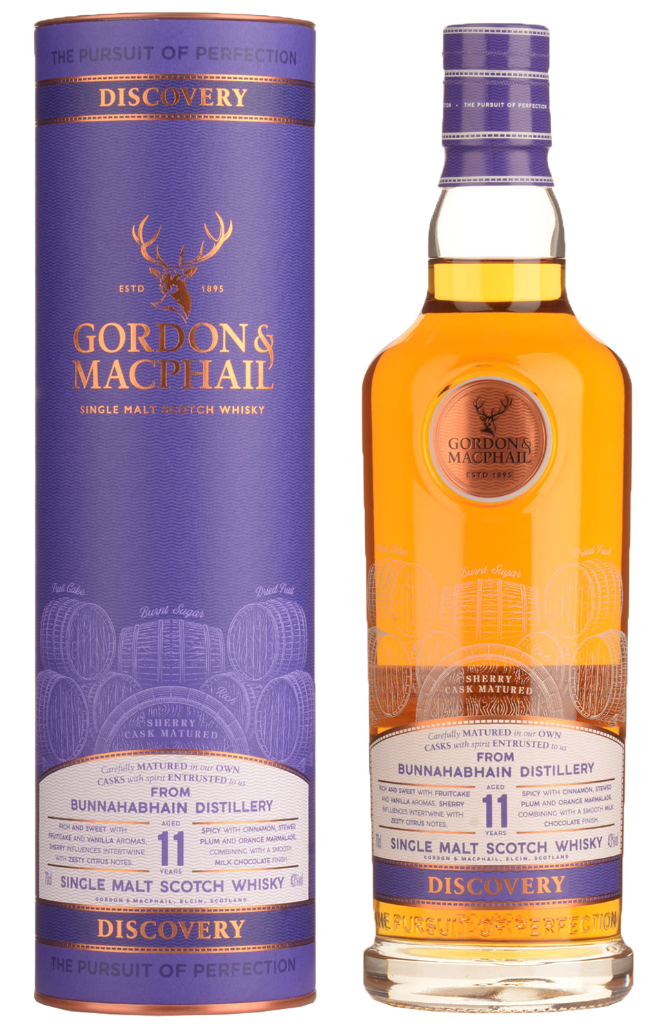 11-year-old Bunnahabhain bottled as part of Gordon & MacPhail's Discovery range, giving examples of some of the distinctive cask and spirit types in Scotland.