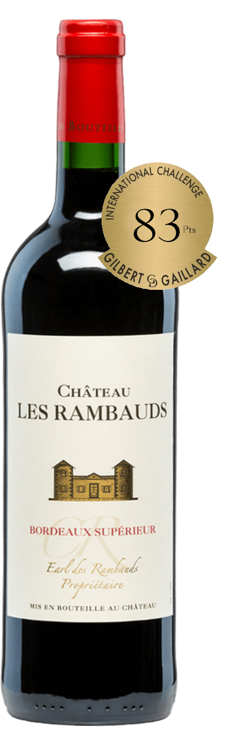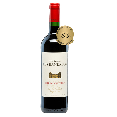 Château Les Rambauds Bordeaux Supérieur by Yvon Mau. The nose is dominated by aromas of red and black berries, liquorice and cedar wood. Followed by notes of vanilla and toast adding to the complex bouquet. On the palate a beautifully full and ripe taste of black fruit and savory edges. A well-structured, fleshy texture followed by lengthy finish.