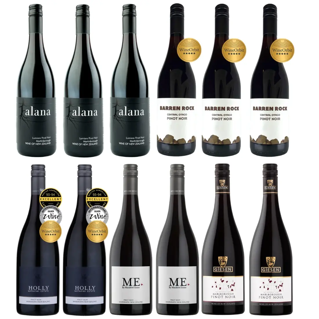 A mixed 12 of delectable Pinot Noir.
